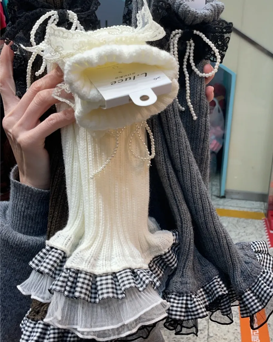 蝴蝶結珍珠蕾絲襪套